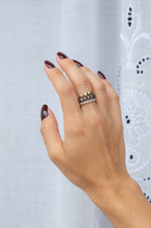 EsgotadoAnel Esferinhas Média Ródio Negro